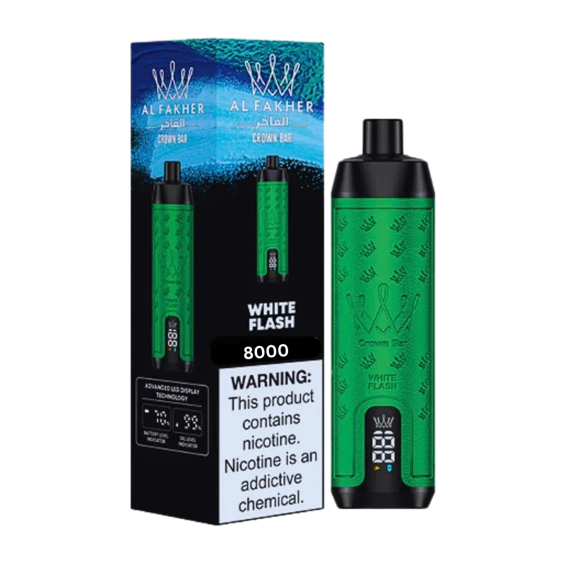 The Al Fakher 8000 Puffs Crown Bar is a top-tier disposable vape that combines convenience, performance, and superior flavors. With a high puff count, premium e-liquid, and a stylish design, it is an excellent choice for anyone looking for a reliable and enjoyable vaping experience. Whether you prefer fruity, menthol, or tobacco flavors, this device is crafted to satisfy your cravings effortlessly. Try the Al Fakher 8000 Puffs Crown Bar today and enjoy a smooth, flavorful, and long-lasting vape session!