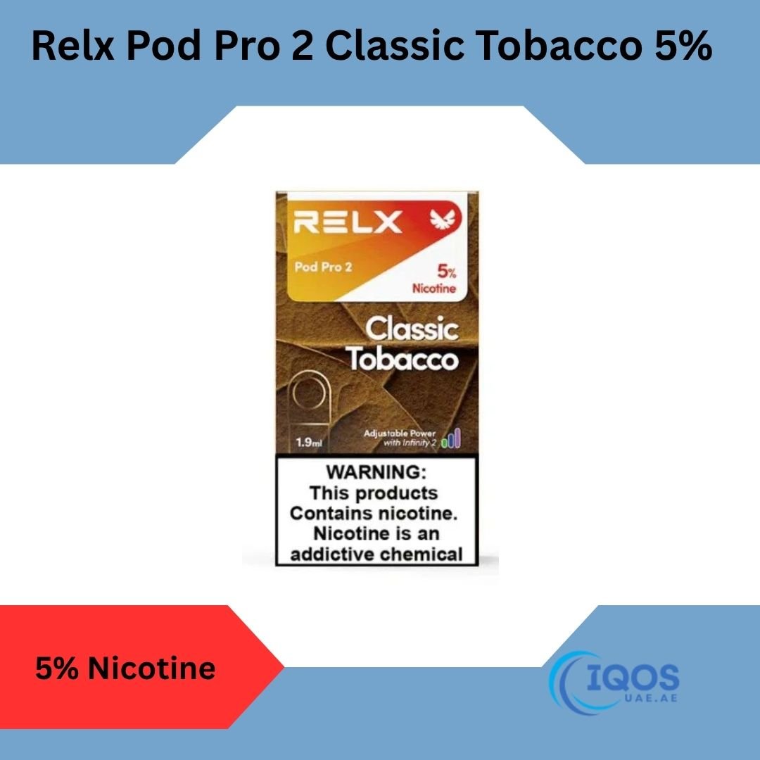 Looking for a nostalgic and satisfying tobacco flavor in Dubai? RELX Pod Pro 2 Classic Tobacco 5% is an excellent option. Designed for use with RELX Infinity 2 and other compatible devices, this pod offers a satisfying and intense nicotine experience. With advanced leak-resistant technology and a well-balanced flavor profile, it’s perfect for those transitioning from traditional cigarettes or seeking a premium tobacco vape.